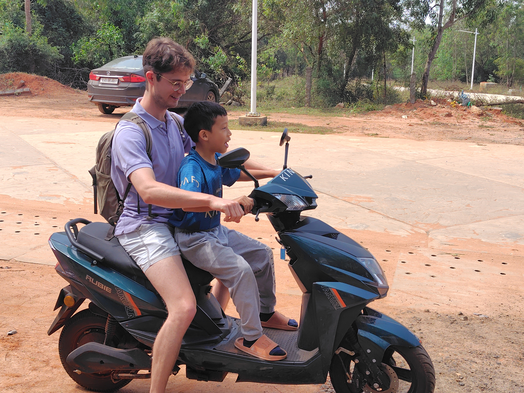 Another character whom I deeply value having met is Shiju. After the debacle with the Tamil teacher at the Language Lab of Auroville, Enzo had mentioned that a volunteer from Taiwan had come, her name was Shiju. Initially, she was simply to help me improve my Mandarin and calligraphy, while I would help her son Kuang with English. I thought this would be a good refreshal for the time I will spend in China (and Japan) soon. But the best thing was that we became friends. I would drive around with Kuang on my scooter in Auroville, and Shiju and I couldn’t stop talking about ideas around filial piety and how they relate to topics like the unborn (a very interesting topic to me hahaha), dementia, or traveling.