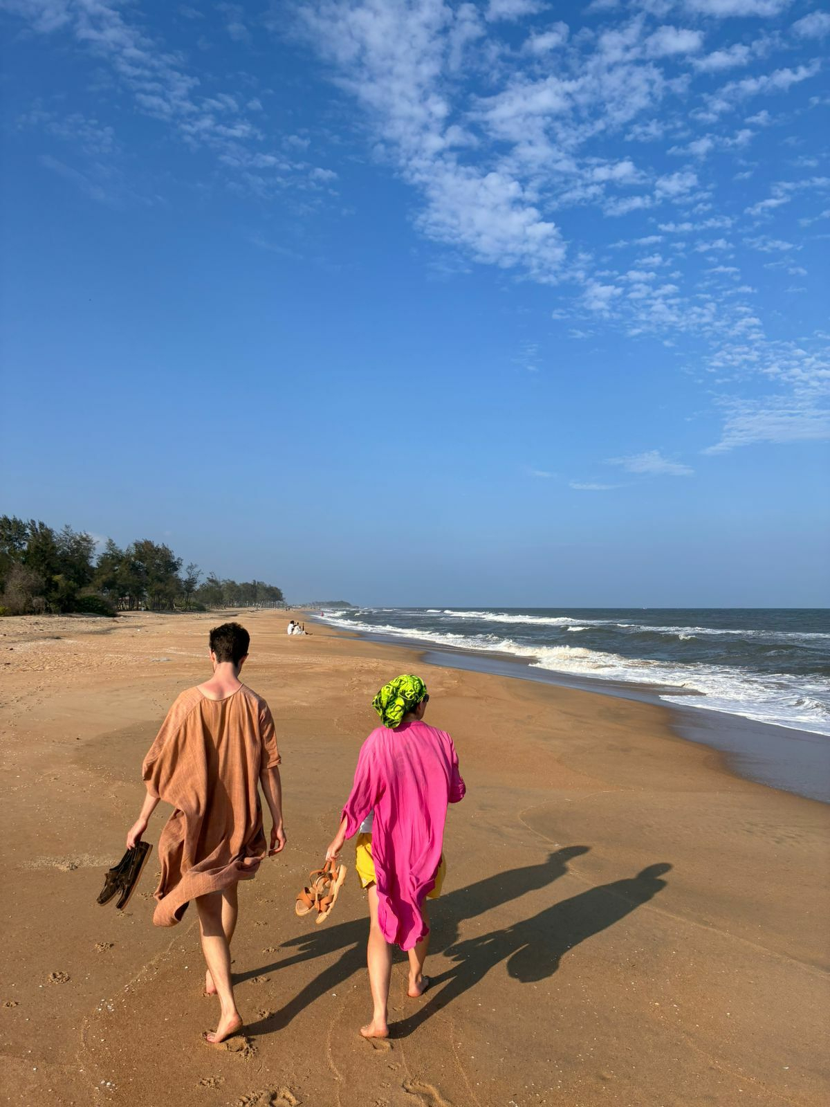 After a few days, Sam joined the two of us. A guy from a place in the south of Tamil Nadu, he is a dentist but came to Auroville to join acting classes. We joined a bonfire singing night and Universal Peace Dances at the Tibetan Pavilion with him. During one of our dinners we made the plan to go to Mahabalipuram. Sam luckily had his car with him, so we drove there. This is a place with loads of temples over 1400 years old. Unfortunately, it was super crowded, and especially Ilona was disappointed by the temples themselves. We had an amazing time hanging out though, we talked a lot about the unborn and sexuality. On the way back we stopped at a beach, where Sam and I took a plunge, and we saw many stranded seaturtles. Before I left Auroville, the three of us had a farewell dinner at the Spot and Catamaran in Pondicherry, where I drank my first beer in a while!