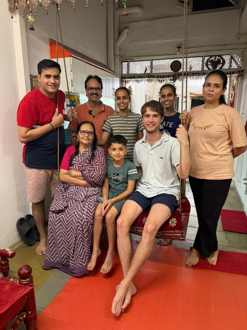 In Ahmedabad I was welcomed in the beautiful family of Jagdip Mehta, a family of musicians who did performances together, and the twin daughters did regular national and international tours. The “heritage home” that they live in is a stunning house that the family renovated around 2008, featuring a 16th-century Italian-designed ceiling in front of the room I was sleeping in! My days in Ahmedabad shifted between visits to the archives at Sabarmati, with its wonderful archivists (separate update!), and time with the Mehta family. We ate together, cracked Diwali fireworks, played card games, and sung devotional songs. Especially the youngest, Shivaj, a big fan of the YouTuber Mr. Beast, was such a lively character with a promising future ahead of him!